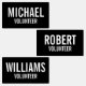 Étiquettes de Badge Volontaire Noir avec nom et titre en blanc sans serif police sur arrière - plan noir. Aussi parfait pour les stagiaires, l'équipage, le personnel, le groupe, l'équipe et plus.