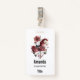 Name tag with a cute retro style carousel horse. Drawn in Pretty pink colors with fancy flowers.