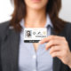 Badge employé de bureau avec un design épuré minimaliste en noir et blanc. Ajoutez une photo de l'employé avec le nom et la profession. Personnalisez encore plus avec trois logos et le nom de la société.