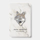 Modern gray and brown illustration of wolf head over beige marble stone texture with a brown and gray grain
