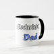 Badminton vader. Vrolijke mok. Kleuren: roze, wit en zwart. Leuk om als trotse vader te dragen.