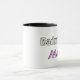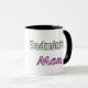 Badminton moeder. Vrolijke mok. Kleuren: roze, wit en zwart. Leuk om als trotse moeder te dragen.