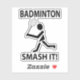 Badminton Smash It Sports Player Badminton Sticker designed by Nisha Prabhu. Get ready to smash your opponents on the badminton court with this fun and stylish sticker featuring a player in action. Show off your love for the sport with this eye-catching design that is perfect for decorating your gear or personalizing your belongings. Whether you're a casual player or a competitive athlete, this sticker is sure to make a statement wherever you go. So gear up, hit the court, and smash it with this awesome badminton sticker!