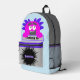 This Bag Buddy bright pink monster backpack bag is perfect for any child or adult that likes a little fun. The light blue background features a cute and funny pink monster holding a sign that tells the world who he belongs to. Personalized with a name or initials on the grey and black front pocket, and perfect for books, school, toys, clothes, sports gear, travel, or anything that needs to be carried. This fun and playful custom design is a part of the 'Bag Buddy' series. Great gift idea for birthday or any special occasion.