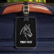 étiquette de bagage à cheval avec texte personnalisé. Ajoutez votre propre texte comme un drôle de slogan, une citation, une blague, un dicton ou un nom. étiquettes à bagages personnalisés pour les bagages de voyage, les valises et autres articles. Couleurs noires et blanches ou personnalisées. dessin d'animaux Cool.