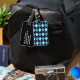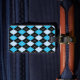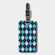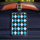 Étiquette élégante de bagage avec un motif à motifs de losanges bleu, noir, et blanc classique, sur l'avant. Le dos de l'étiquette est fait dans le noir solide, avec le texte fait sur commande blanc. Personnalisez le texte pour adapter à vos besoins. Les produits assortis de voyage sont disponibles.