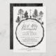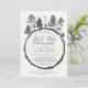 Cette invitation à la communion rustique est ornée d'un arrière - plan de cercles d'arbres et d'une scène boisée qui comprend un cerf et des pins.
