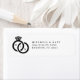 Étiquettes de réponse de mariage noires et blanches simples avec monogramme de bague en diamant. Personnalisez-le avec les détails de votre événement.