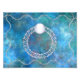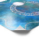 Bague argentée ornée et stylisée, parsemée de perles blanches et nuageuses et sertie d'une seule gemme ronde blanche avec une étoile qui se jette dans les profondeurs, sur fond de fractales bleues.