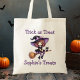 Cette mignonne petite sorcière qui vole sur son balai ravira votre petit astuce ou traiteur. Les champs de texte sont entièrement personnalisables.