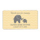 Baguettes de bouteille d'eau de baby shower jaune et gris mignonne. Bouteille d'eau de douche-bébé sur mesure étiquettes avec design animal zoo et chevron motif arrière - plan. Modèle auto-collant personnalisé élégant do-it-yourself bouteille d'eau. Typographie stylisée pour le nom et la date de naissance de la petite fille ou garçon. Utilisez comme décor de table classe ou merci pour la faveur de la fête venue pour les invités. Design zigzag neutre de genre avec couleur arrière - plan personnalisable. c'est-à-dire bleu pastel, rose, gris ou jaune doux. Impression par bande de zag zig.