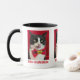This funny Christmas mug is purrfect for the cat lover! The design features Peaches the Tuxedo Cat with her tongue sticking out wearing a Christmas bow on a red background. Below her photo, are the words, "BAH HUMBUG." This mug will add a little cheer to your holiday. Copyright peachesthetuxedocat