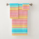 Wide and narrow stripes in shades of blue, orange, pink and yellow on this bath towel set will give a tropical look to your bath! Bright and cheerful, it will remind you of warm beaches, sun and sea!