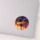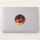 The Bahamas sticker with sunset and palmtrees, tropical summer vibes, Bahamas beach style, rounded shape.