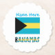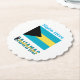 Personalized party paper coaster shows the Bahamian Flag and the word BAHAMAS underneath. Above, add a name, in blue letters, for a personalized touch for your party or event. Fun to use at friend or family reunions, travel group events, and clubs. Great for hosting a housewarming or bon voyage event.