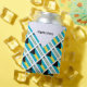 Design shows the Bahamian Flag and the word BAHAMAS underneath. Design is tiled diagonally for artistic effect. A white space of squiggly squares holds a place for a name. Personalize it for a special look or create a custom gift.