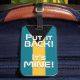 Bahamas National Flag Funny Patriotic Luggage Tag with the Bahamas national flag colours covering front side of the tag. Funny text "Put it BACK! It's MINE" is written over the flag colours. Text is fully customizable using "Customize it!" feature. Other side of the tag is reserved for your information. This super fun Bahamas Luggage Tag is the perfect companion for your travel bag and the lovely gift for any occasion. © 2023 CountriesOfTheWorld