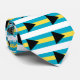 The flag of the Bahamas features a black equilateral triangle on the left representing the unity and determination of the people of the Bahamas. The triangle is oriented toward three equal-width stripes symbolizing areas of natural resource; two aquamarine stripes at the top and bottom of the flag representing the sea and one gold stripe representing the land. The flag was adopted on July 10, 1973.
