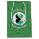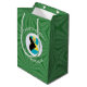 Medium gift bag with an angel wearing the flag of Bahamas for holiday gift decorating or Christmas decor. The Bahamian Flag Christmas angel is found inside a white circular fractal of squiggly squares. The background is a green fractal of squiggly squares. Add your own text or personalize with a name and the year. Design is on both sides of gift bag. Great for your holiday gift decorating.