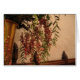 Les baies roses rougeâtres gracieuses de poivre cascadent vers le bas le côté d'une composition florale en autel pour tout le jour de saints. (6 novembre 2005)