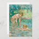 Baigneuses (1892) by Berthe Morisot portrays a serene scene of women bathing, capturing the relaxed atmosphere of the moment with her signature Impressionist style. In this painting, Morisot expertly uses light brushstrokes to depict the figures of two bathers in the soft, dappled sunlight. The women are immersed in a natural setting, possibly beside a river or lake, with their bodies rendered in fluid, harmonious tones that evoke a sense of calm and intimacy. The colour palette is dominated by soft blues, greens, and whites, creating an ethereal atmosphere, while the brushwork emphasizes the natural beauty of the female form. Morisot’s portrayal of these bathers reflects her exploration of the female experience in both domestic and outdoor settings.