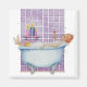 Illustration d'une femme bénéficiant d'un agréable bain à bulles, trempant dans des bulles, vin à la main et bougies allumées... la joie d'une pause détente ! Un merveilleux cadeau pour tous ceux qui ont besoin de juste s'arrêter et profiter des plaisirs simples de la vie.