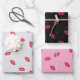 Un joli trio de baise à lèvres Kiss de feuilles de papier d'emballage - noir, gris et rose. Parfait pour les cadeaux emballés avec amour et baisers