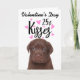 Baisers de carte de la Saint-Valentin...de votre Labrador chocolat. Carte de la Saint-Valentin personnalisée pour l'amant de chiens. Options de personnalisation : couleur de fond. N'oubliez pas de changer le message à l'intérieur de la carte.