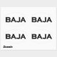 The letters BAJA of this oval logo are a reference to Mexico's Baja Peninsula. The Baja Peninsula is famous for its blue water, whale watching, beaches, saltwater fishing, and other attractions. Famous Baja destinations include Cabo San Lucas, San José del Cabo, and La Paz.
