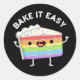 Bake It Easy Funny Cake Pun Dark BG Classic Round Sticker