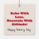 This is a really fun ornament for anyone who loves to bake, but especially decorate. The front features a baker who is making a chocolate cake and really tossing those sprinkles around! The back has tiny golden hearts tiled. On the back the text reads, "Bake With Love. Decorate With Attitude!" Then below is "Happy Bakery Day" which is annually on t he 4th Friday in September. You are free to change or remove all the text on the back and put whatever you want (i.e. NAME, YEAR) to suit your recipient. Designed by Sheila Cicchi, Brownielocks.com. All Rights Reserved. NOTE: Due to the design style, this can only be for SQUARE ornaments.