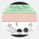 Product price sticker for a home baker, bakery, or pastry chef featuring girly doodle style cookies, cupcake, hearts and flowers with your choice of colour scheme throughout, and personalized with your text.