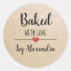 Baked with love kraft script name classic round sticker