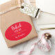 Modern "baked with love" sticker with a white font on a red background embellished by a cute heart. Customize text.