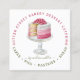 An elegant whimsical watercolor cake bakery pastry chef business card with an elegant cake and coloured type in the round logo in pinks and greens surrounded by a floral. with modern script signature type. The typography is in pastel hues and adds a touch of elegance.
