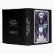 Un unique boulanger à thème Tarot, chef pâtissier classeur d'affaires, avec un squelette avec gâteau et whisky. Un style unique avec squelette boulanger dans le casquette du chef. Framboise et turquoise sur le noir.