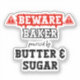 The phrase “Beware: Baker Powered By Butter & Sugar” captures the sweet reality of baking life with a playful twist. A witty sticker perfect for bakers, pastry chefs, home bakers, and baking enthusiasts who thrive on the essentials of butter and sugar. Great for kitchen pros, culinary students, or anyone who loves to bake with humour and heart.