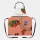 Baker's kitchen apron features a stylish mixed berry design in a coral colour palette with strawberries, blueberries and cherries complimented with a geometric circle design in green with faint gold accents. Designed as a template and shown with your name's kitchen, you can personalize using the fields provided or use the "message" button to contact the designer for help.