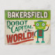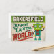 A funny Bakersfield California vintage travel postcard featuring a friendly robot with fun retro style text that says, "Bakersfield, Robot Capital of the world!"