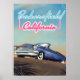 Bakersfield, California USA. San Joaquin Valley travel poster. Vintage american car.