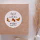 Cute bakery sticker featuring illustration of croissants. The text says "baked with love."
