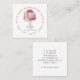 An elegant whimsical watercolor cake bakery pastry chef business card with a coloured type in the round logo in pinks and greens and a cute composition of bakers tools and utensils surrounded by a floral. Everything a baker needs from whisk to wooden spoon to rolling pin and beaters. Personalize your name in a modern script signature type. The typography is in pastel hues and adds a touch of elegance. Unique square format. Add your contact information to the back of the card.