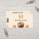 A soft beige, cream coloured background. Decorated with a basket with bread and croissants. Personalize and add your business logo and the name on front.