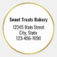 This bakery sticker has text you can change to your desired message such as a company name, address, and telephone number. The faux gold look is an artist's rendering to look like brushed metal but the sticker is not a foil product.