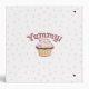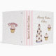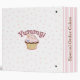 Whimsical bakery binder done in white, with pink polka dots, on the front and back. Sweet graphics of a wedding cake and two cute cupcakes decorate the front, with one cupcake, on the back cover. Spine is done in a pink and white stripe pattern. All text in brown is fully customizable to suit your business needs. Great as a photo album to show off your creations, special order book, or record keeping. Purchase the inserts you need at your local discount or office supply store.