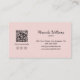 Modern Bakery Logo QR Social Media Icons Pink Business Card. Elevate your homemade bakery brand with this stylish and functional business card. Featuring a soft pink background, it allows you to create your own bakery’s logo, add a QR code for easy access to your website or menu, and customize social media icons to match your platforms. Perfect for small bakery owners, home-based bakers, and pastry chefs looking to leave a lasting impression. Personalize with your details to create a unique and professional look.