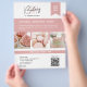 Promote your bakery with style and sweetness! This customizable flyer is perfect for showcasing your cupcakes, macarons, cakes, and more. Add your own three photos to highlight bestsellers or signature treats, and personalize the text with your initials, name, contact info, and tagline. A dedicated section for a QR code makes it easy for customers to scan and order or follow you online. Ideal for bakeries, pastry chefs, cake artists, and dessert shops looking to share their brand in a beautiful, professional way.