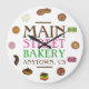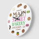 Clock design features an original marker illustration of an assortment of delicious fresh-baked cookies including gingersnaps, macarons, Italian rainbow, chocolate chip, sugar cookies, and more. Just personalize with your bakery information.