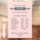 Welcome customers in style with this Bakery Opening Hours Rolling Pin Pink Window Cling — perfect for bakeries, pastry chefs, and cake artists. Personalize it with your business name, and tagline to create a unique monogram logo that reflects your brand. Add your opening hours to keep clients informed at a glance. Easy to apply and remove, this window cling is a chic and practical way to enhance your storefront with a professional touch.