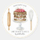 This whimsical cute watercolor cake bakery pastry chef business product labels with baker's tools; rolling pin, and whisk and a glorious filled dessert cake in the middle with cherries, whipped cream and chocolate. Simple tools of the trade! Your name signature in script typography and the name of your business, with the tagline: made with love. For a pastry chef or dessert caterer.